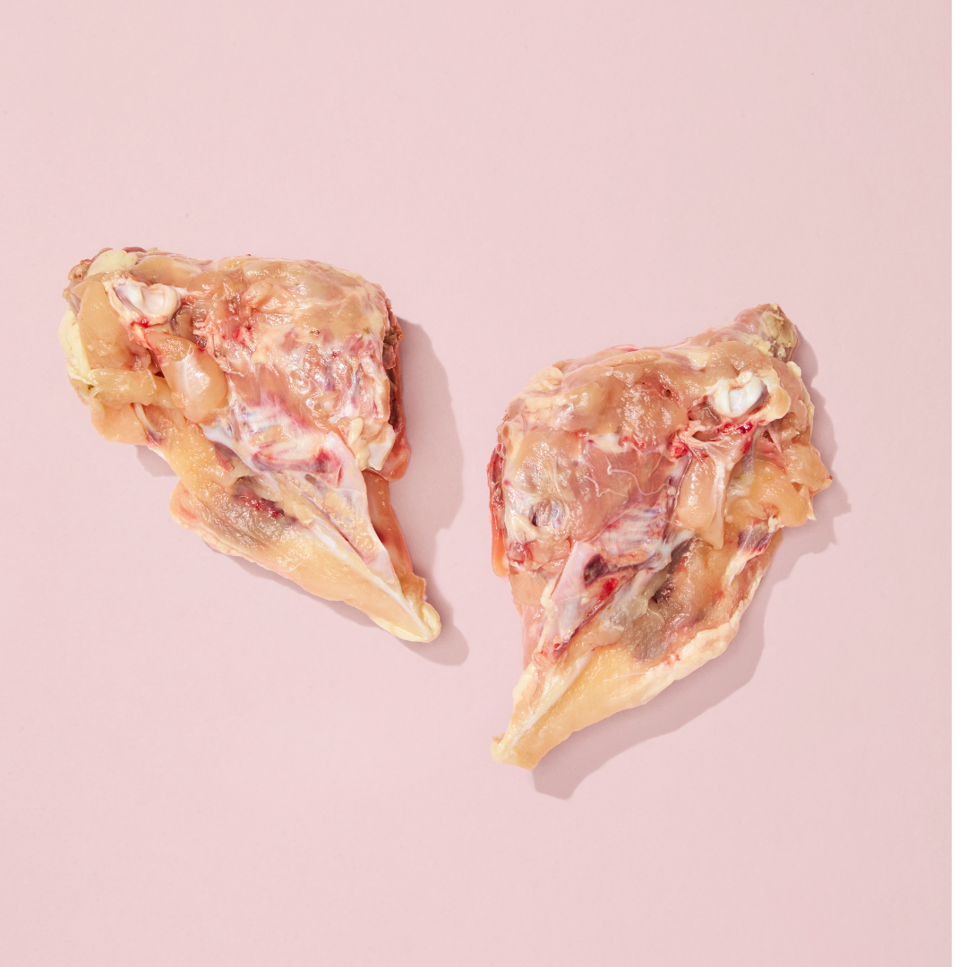 Our chicken is from the human food chain. Depending on what is available we use a mix of free range and barn raised chickens for our mixes, necks and frames. We also stock locally sourced Organic Chicken frames.